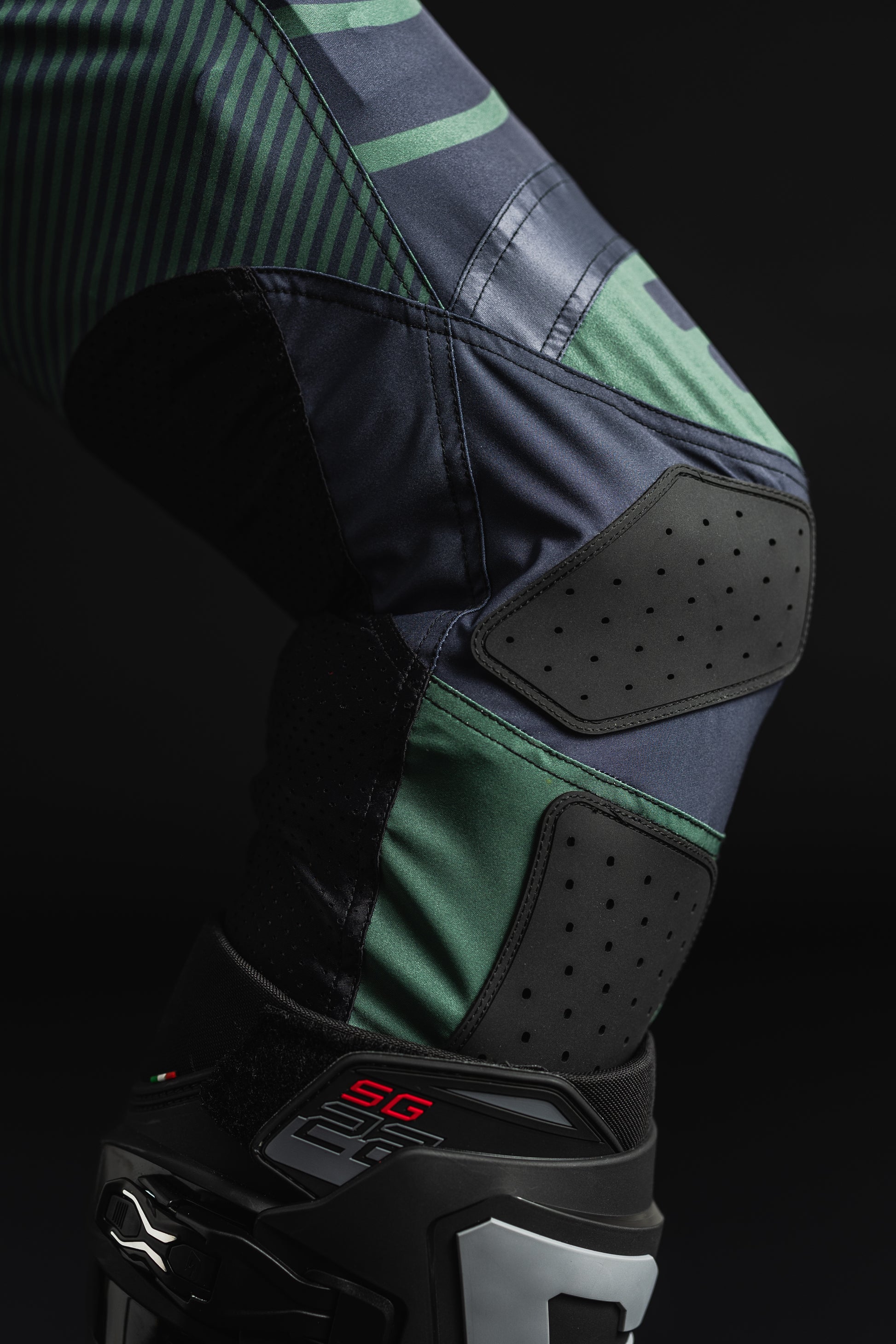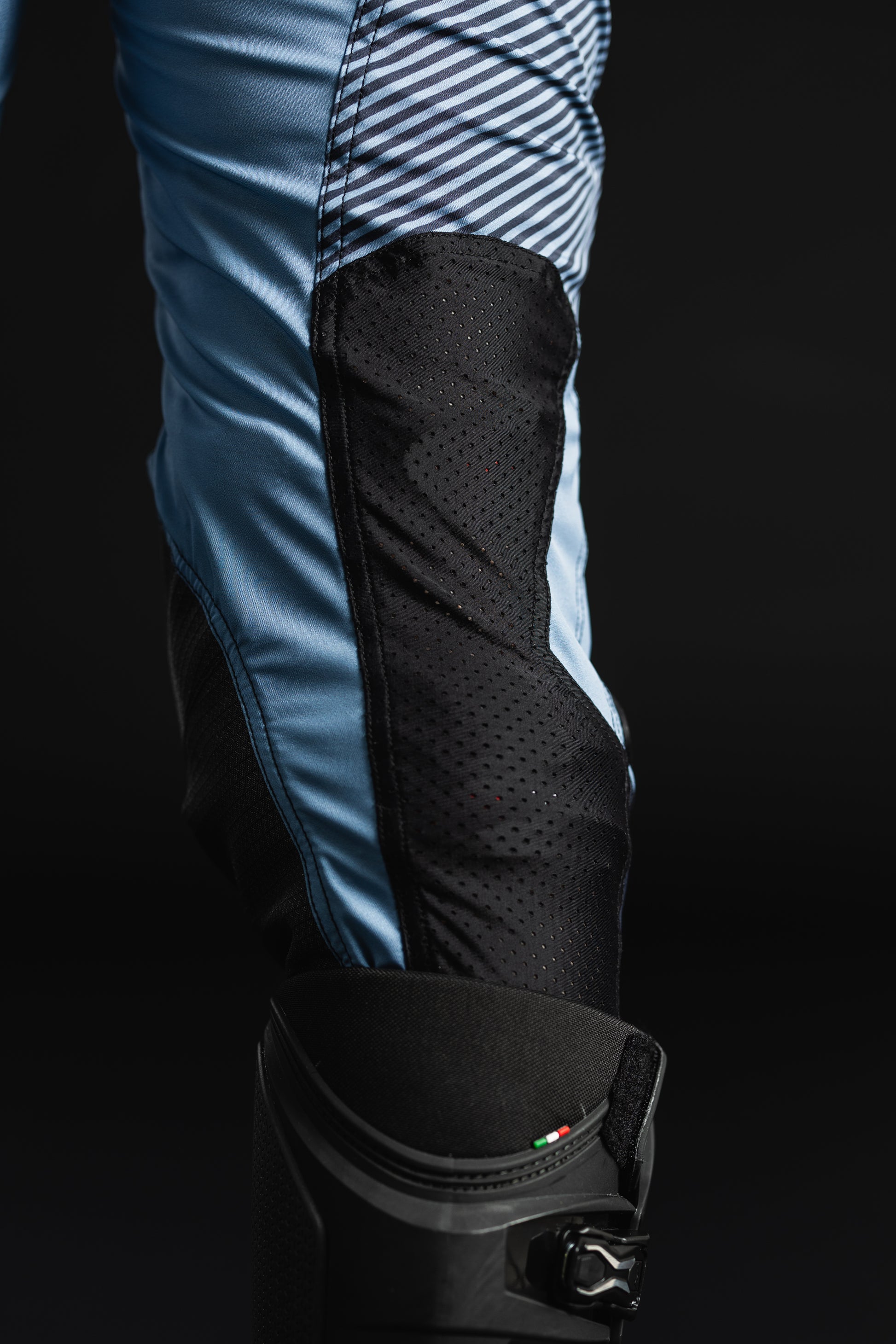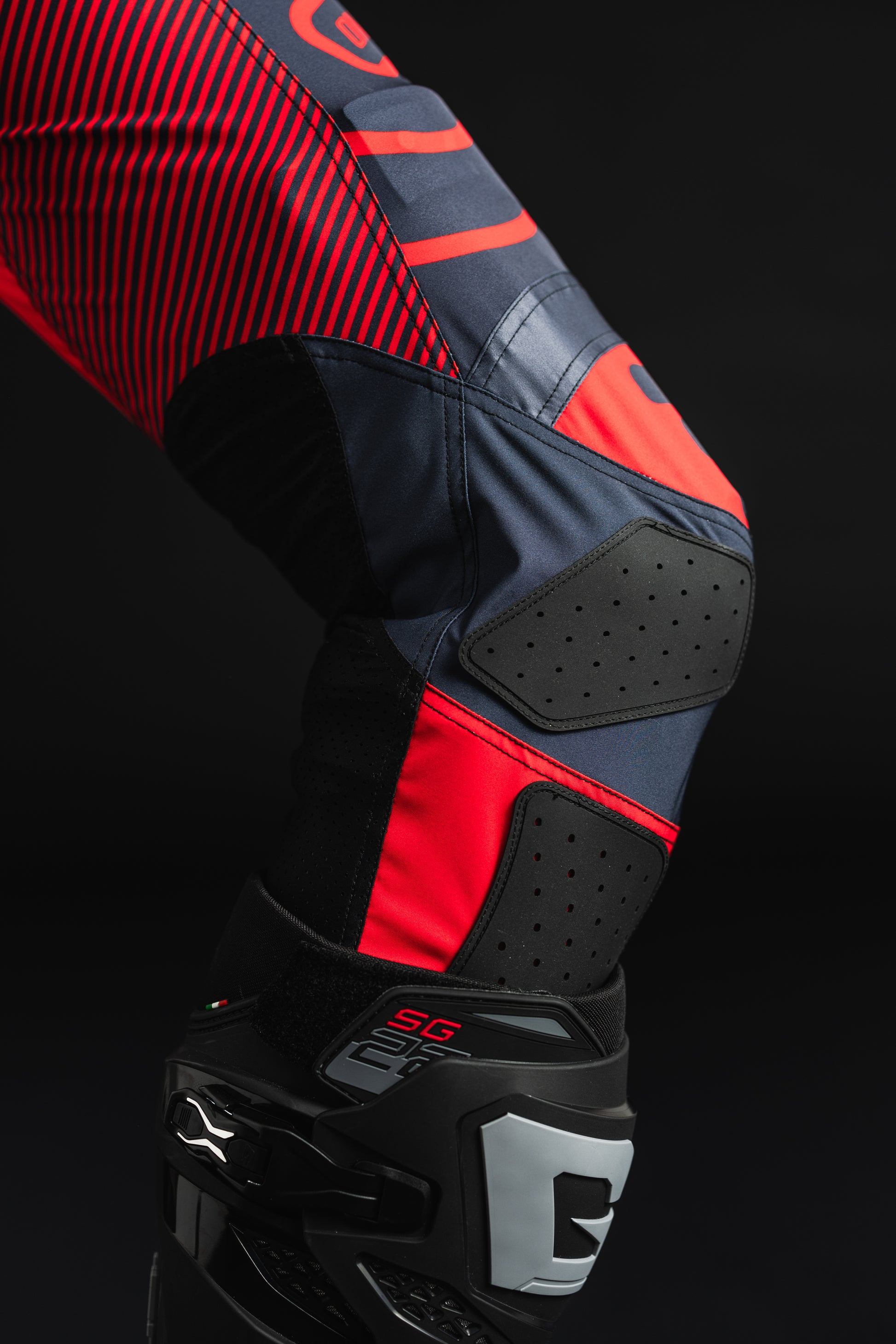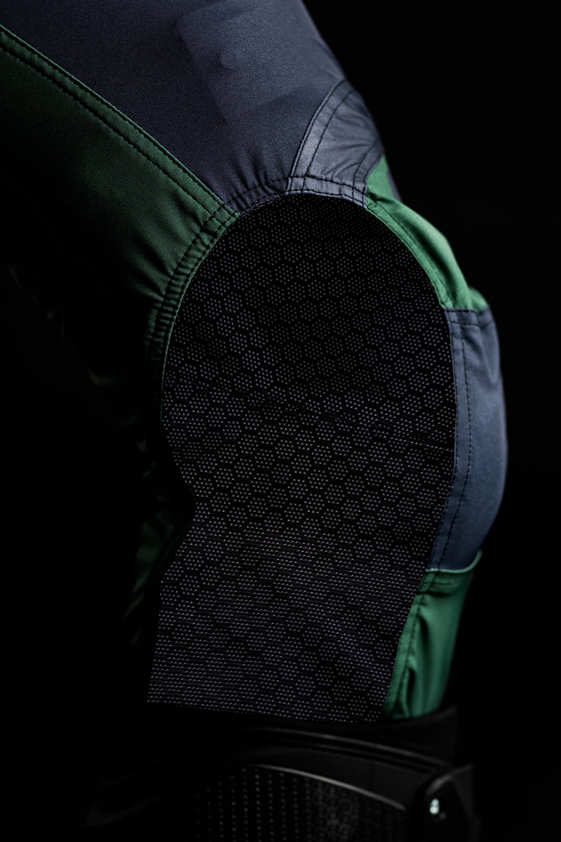 Gli inserti in carbonio assicurano un equilibrio perfetto tra robustezza e flessibilità, mentre la protezione in gomma laserata sulle ginocchia, ergonomicamente sagomata, garantisce un supporto ottimale nelle azioni più tecniche.